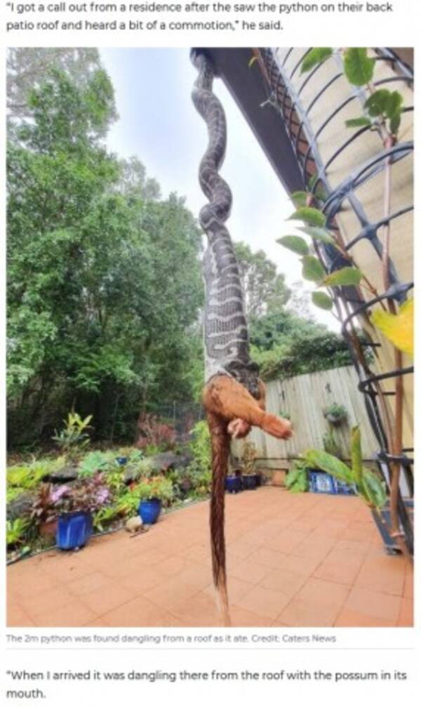 民家の庭で2メートル超のヘビがポッサムを丸飲み 豪 年5月17日 エキサイトニュース